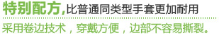 采用優(yōu)異天然乳膠,特別配方,比普通同類(lèi)型手套更加耐用。